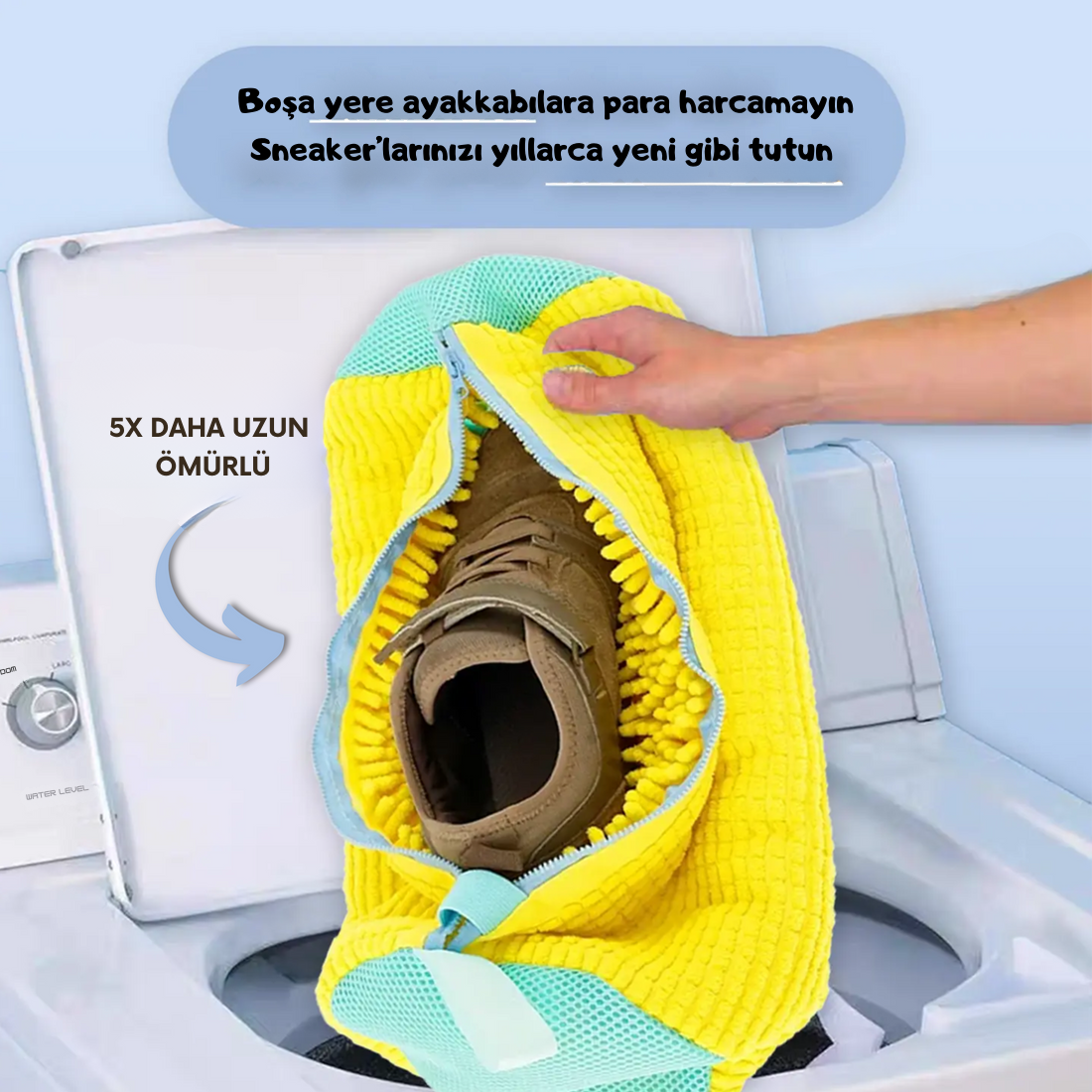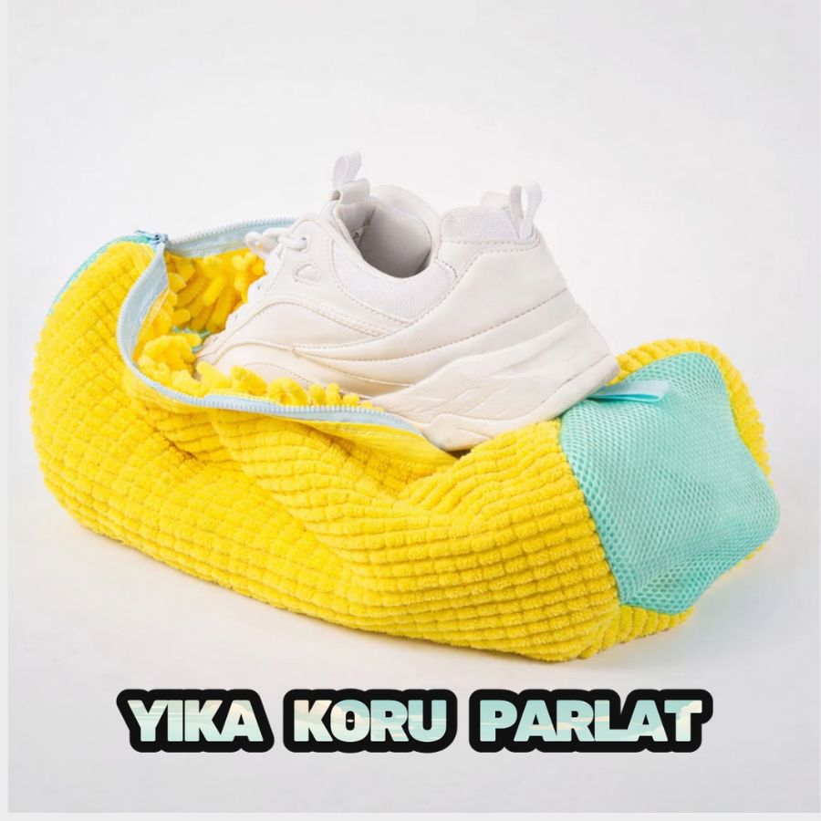 Ayakkabı torbası, ayakkabılarınızı temizlemenin güvenli yoludur. Binlerce yumuşak lif, hem ayakkabılarınızı hem de çamaşır makinenizi korurken kiri temizler.